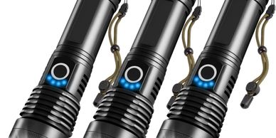 UUYEE 3Pack Rechargeable Flashlights High Lumens, Super Bright Flashlight, 5Modes LED Flashlight Rechargeable, Adjustable Tactical Flashlights High Powered,...